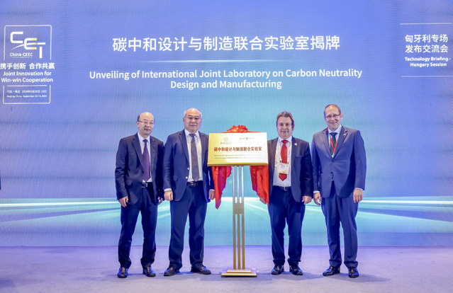 会上,黄志球与安德拉斯・内梅斯拉基共同为中匈碳中和设计与制造国际合作联合实验室揭牌。
