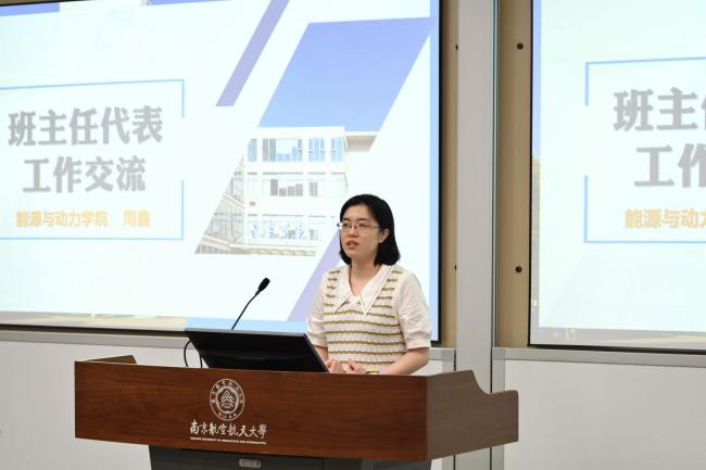 能源与动力学院周鑫作为新任青年班主任代表发言。她表示将应以“尊重、鼓励、成长”为支点做好班主任工作,挖掘学生潜力,成为学生健康生活、专业学习、科研实践的知心人、热心人和引路人,帮助学生走好大学生活的每一步。