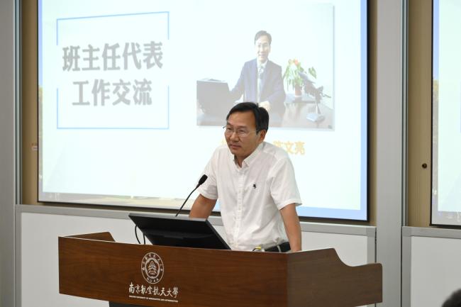 往届班主任代表、机电学院陈文亮分享班主任工作心得与经验。他指出,班主任应与学生积极构建亦师亦友的和谐关系,并通过班会、团体活动等帮助班级形成积极向上的班风,同时也应立足学生个性化的成长需求,充分发挥专业优势,在学生科创实践中精准引导、下足功夫,为学生上好“开学第一课”。