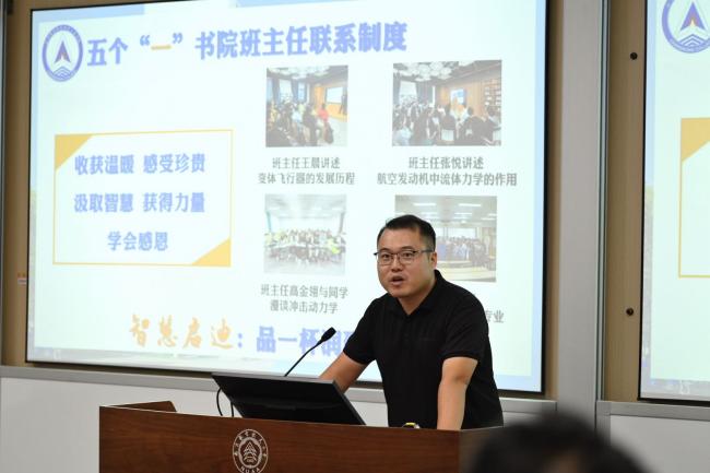 为进一步践行多效并举、以润促致的教育理念,充分发挥班主任团队在“准书院制”学生培养模式下的育人功能,9月13日下午,长空学院举办“高质量成就每一位学生”2024级班主任受聘仪式暨师生交流会。长空学院党委书记、院长蒋彦龙,航空学院院长助理彭翰旻,能源与动力学院党委副书记樊小杰,机电学院党委副书记赵铮,航天学院党委副书记林晓,长空学院党委副书记庞依达,长空学院2024级班主任,长空学院全体教学办及学工办老师出席本次活动,受聘仪式由长空学院2024级辅导员石雯轩主持。