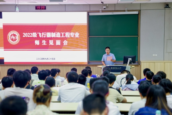 9月25日晚,机电学院2022级飞行器制造工程专业师生见面会于将军路校区4101教室举行。机电学院副院长于敏、航空宇航制造工程系主任戴宁,班主任代表陈文亮、张臣、袁言杰、郝小忠、李泷杲、韦红余,以及2022级飞行器制造工程专业全体学生共同参与了此次活动。见面会由2022级本科生辅导员康泽源主持。