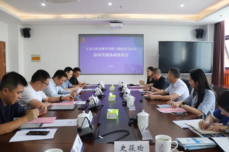 9月23日,人文与社会科学学院与溧阳市司法局在天目湖校区综合服务楼204会议室召开结对共建协商座谈会。溧阳市司法局局长葛军伟、副局长陈靓、公共法律服务中心主任王莹,南京航空航天大学天目湖校区党工委书记王伟华、人文与社会科学学院党委书记楚广兴、天目湖校区管委会副主任潘顺荣、人文与社会科学学院法律系教师郭莉、郑文革参加了座谈会。座谈会由楚广兴主持。