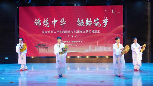 9月25日,南航老年大学联合秦淮老年大学举办“锦绣中华银龄筑梦”—庆祝中华人民共和国成立75周年文艺演出在南京航空航天大学举行。秦淮区区委常委、区委组织部部长、区老年大学校长马献军,人大常委会党组成员张立龙,副区长卢杰,政协副主席於朝勇,原南京市一级巡视员、南京秦淮老年大学协会会长、秦淮老年大学常务副校长邵强,我校党委常委、组织部部长、老年大学校长李遥,老体协理事长袁川耇,夕阳红艺术团团长、退教协理事长王宜胜,老年大学常务副校长彭建华,以及秦淮区老年大学、我校离退休处等单位的负责同志,与老同志、师生代表200余人共同观看了演出。