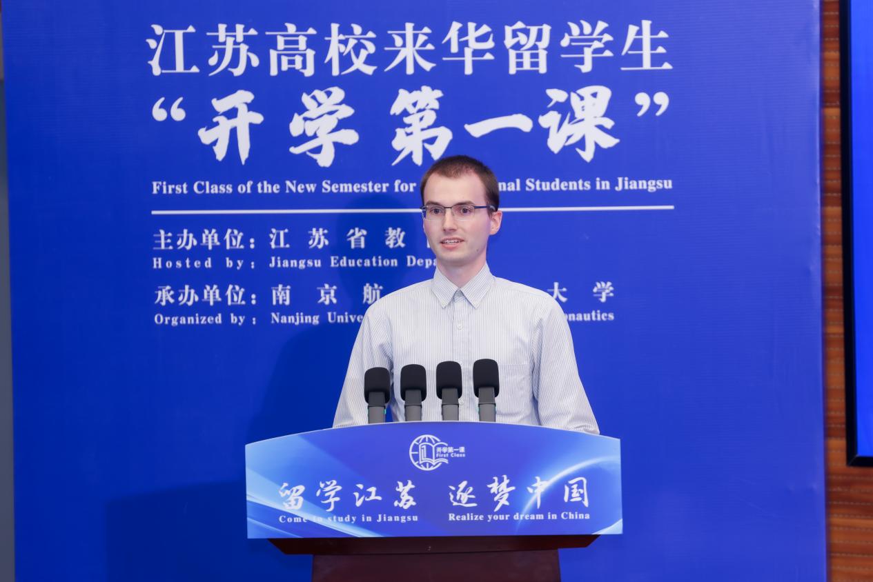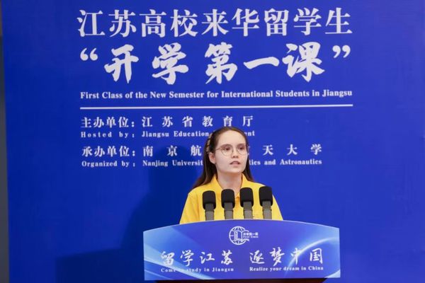 来自东南大学的哈萨克斯坦籍博士生伊优娜、来自扬州大学的美国籍博士生本杰明分别作为新生代表,分享了各自对中国历史文化的热爱和选择来苏学习深造的决策过程,表达了对新学期的美好憧憬,期望有朝一日可以为中哈、中美文化交流和科研合作做出贡献。