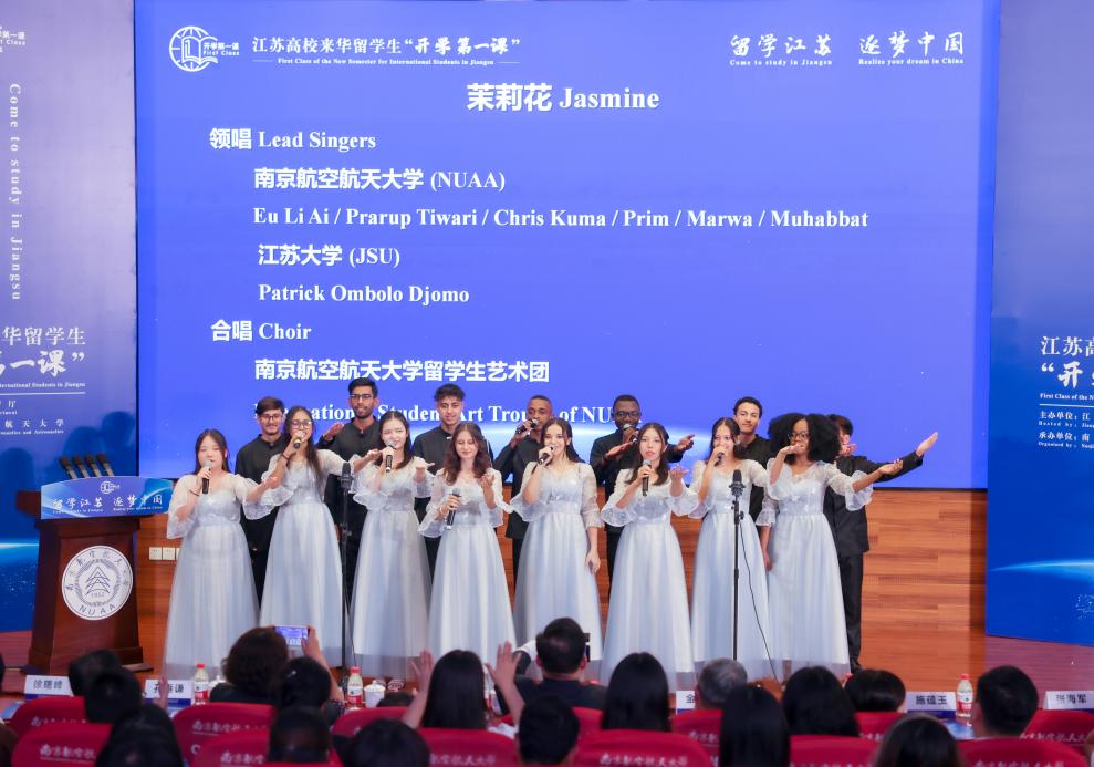活动尾声,我校外国留学生艺术团和江苏大学留学生代表共同献唱江苏经典民歌《茉莉花》,“开学第一课”圆满收官。