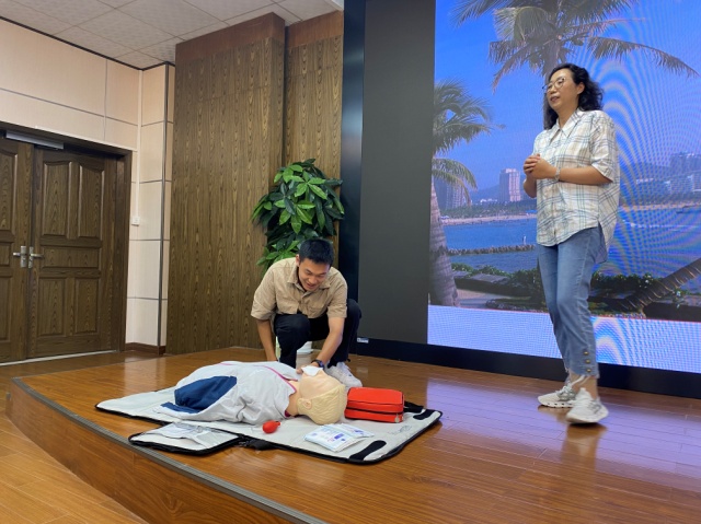 培训现场,陈晓梅以生动的案例引入主题,强调了掌握心肺复苏技能在紧急情况下的重要性,随后详细讲解了心肺复苏的操作步骤和关键要点,包括判断意识、检查呼吸、胸外按压、开放气道和人工呼吸等。最后,陈晓梅进一步强调了实验室安全的重要性,指出在实验过程中可能出现的各种意外情况,如化学试剂灼伤、触电等,而掌握正确的急救技术是应对这些意外的关键。