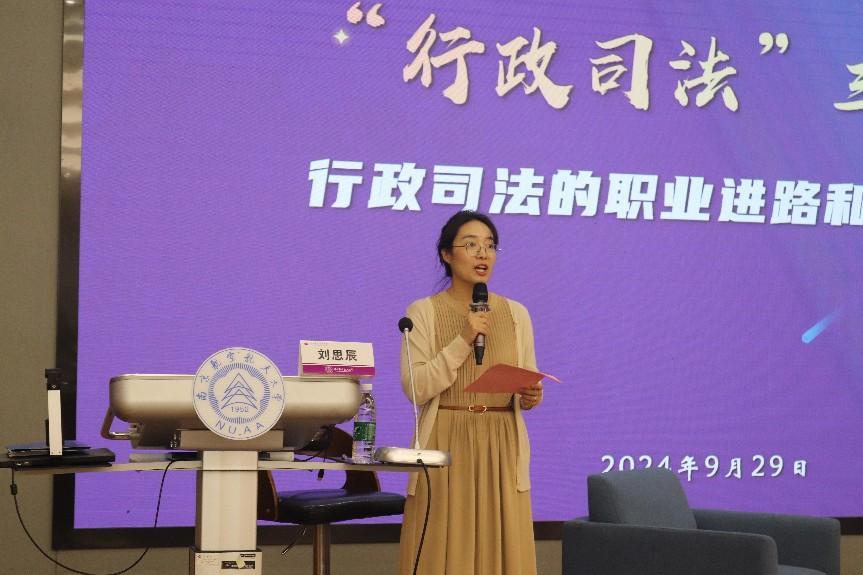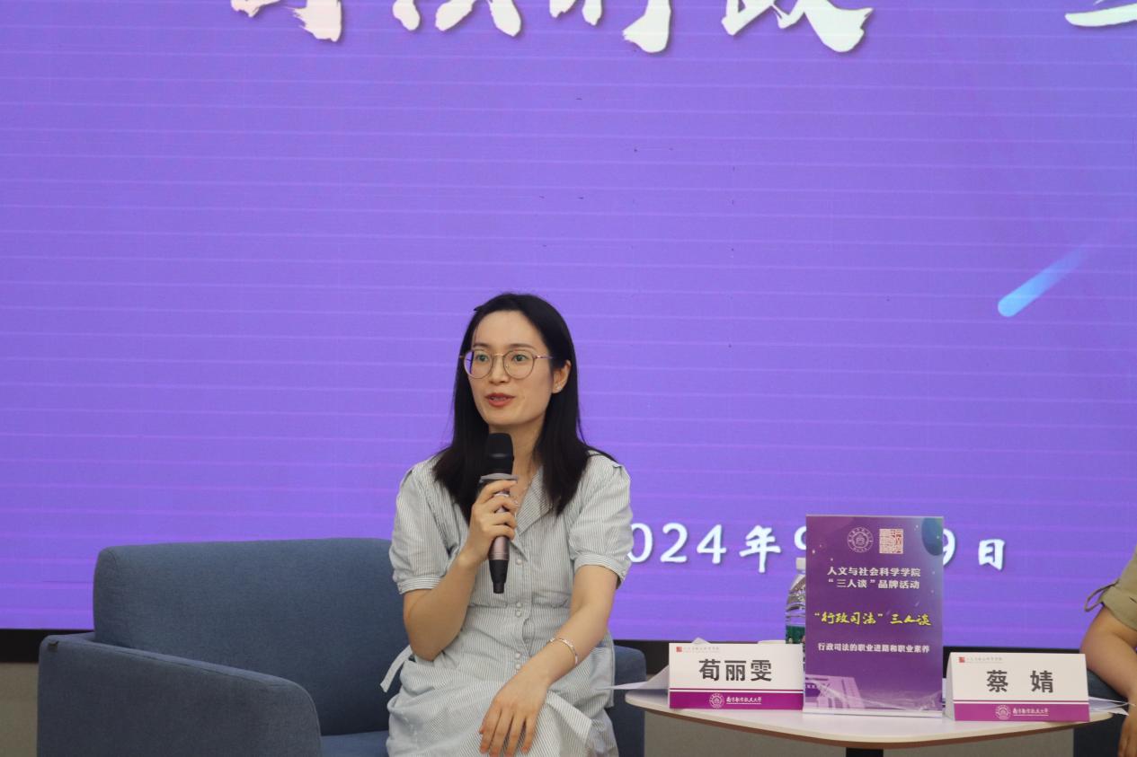 9月29日下午,人文与社会科学学院在天目湖校区巡天楼二楼报告厅举行职业规划“司法行政三人谈”品牌活动。溧阳市司法局复议应诉科科长荀丽雯、溧阳市司法局政治处主任蔡靖作为嘉宾参加活动,活动由学院党委副书记刘思辰主持。