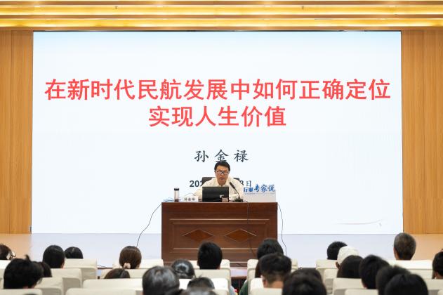 院长张卓然讲授课程《风起扬帆正当时——行业发展导论与学科专业概述》。他从民航发展与时代机遇、学科优势与特色平台、人才培养与育人成效三个方面介绍了民航行业背景与民航学院情况。他寄语同学们要以“科学家精神”为引领,脚踏实地做人做事做学问,努力做胸怀家国的奋斗者、崇德修身的奉献者、追求卓越的开拓者、交通强国的建设者,为交通强国民航新篇章建设贡献青春力量。