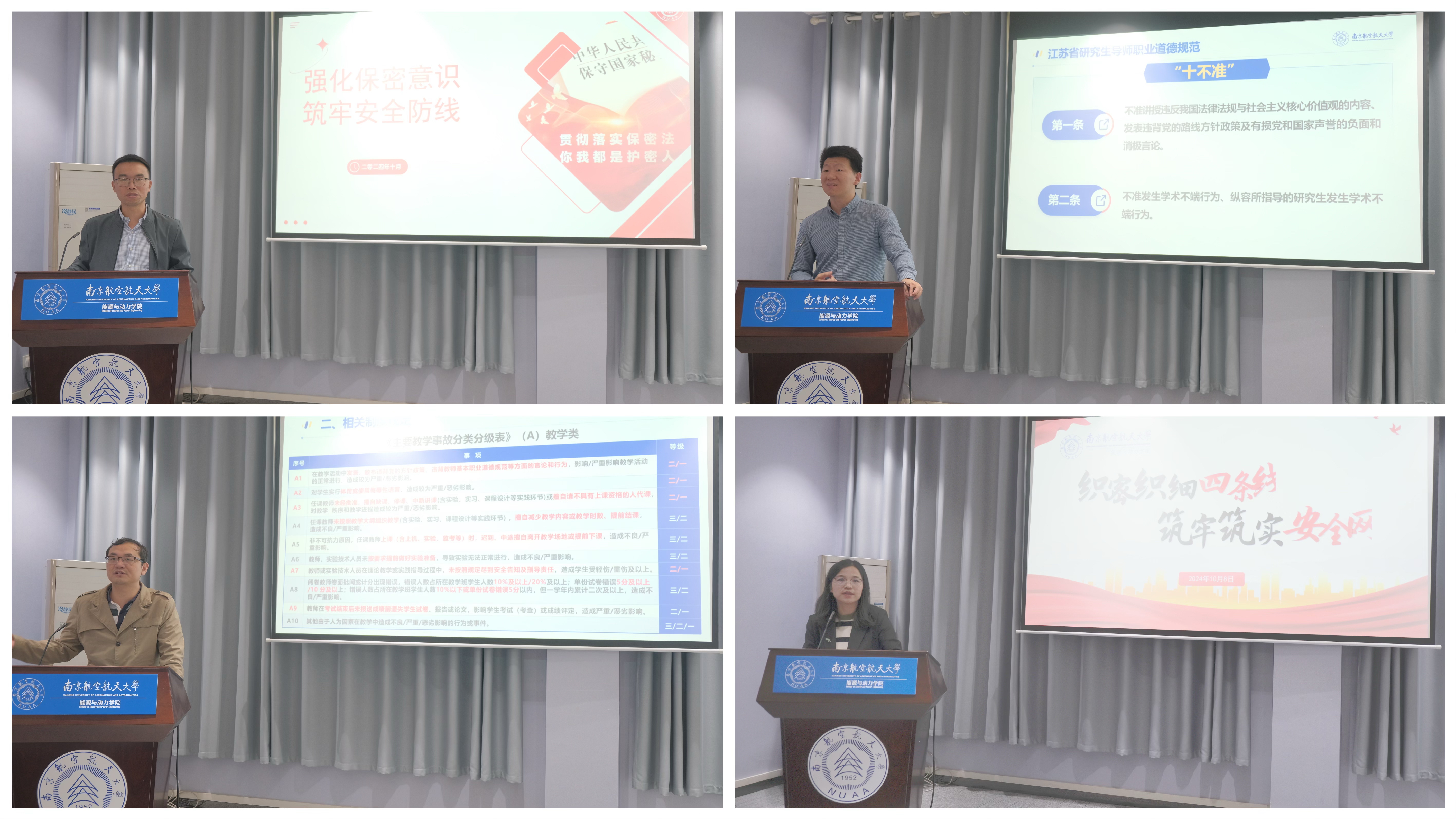 会上,学院副职领导结合各自分管工作,分别围绕保密、本科教学安全规范、研究生导学关系、实验室安全、意识形态、学生安全等方面开展警示教育,并作相应工作提醒。希望全体教职工以案为鉴,警钟长鸣,进一步强化责任意识和底线思维,为学院营造安全稳定、风清气正的教育教学环境奠定坚实基础。