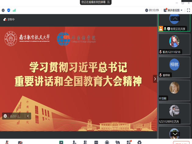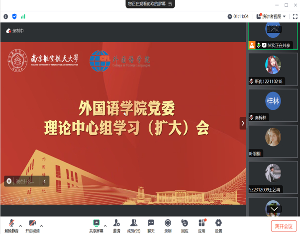 为了深入学习贯彻习近平总书记重要讲话和全国教育大会精神,大力弘扬教育家精神,10月9日,外国语学院召开院党委理论学习中心组(扩大)第七次学习会,邀请学习贯彻党的二十届三中全会精神校内宣讲团成员、马克思主义学院平旭教授作专题辅导报告。院党委理论学习中心组全体成员、师生党支部书记参加学习会,全体师生党员线上参会,通过线下主会场、线上分会场同步开展,院党委书记左彤云主持会议并讲话。
