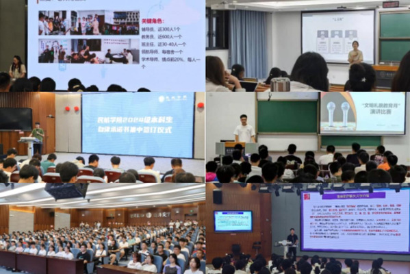 天目湖校区驻区学院结合学院工作,开展文明礼貌教育主题年级会、班会以及演讲比赛。其中自动化学院、民航学院、人文与社会科学学院、艺术学院、物理学院组织新生开展“文明礼貌”主题年级会、班会贯彻学习“七文明”内容及要求;计算机科学与技术学院/软件学院、人工智能学院开展文明礼貌教育主题月讲评;通用航空与飞行学院积极组织各班级开展主题演讲比赛,通过加强新生校规校纪教育,增强学生礼貌意识,让学生有所知、有所想、有所悟,让大家把文明礼貌深深刻在心中,做好新时代的中国青年。