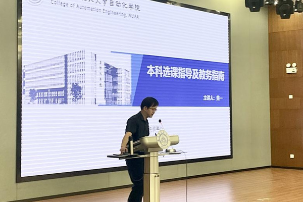 为帮助新生更好地规划课程学习,开学初,自动化学院在天目湖校区巡天楼报告厅召开了2024级本科新生选课指导宣讲会,自动化学院教务员黄一、王琦以及天目湖校区2024级全体本科新生参加了此次活动,宣讲会由黄一主讲。