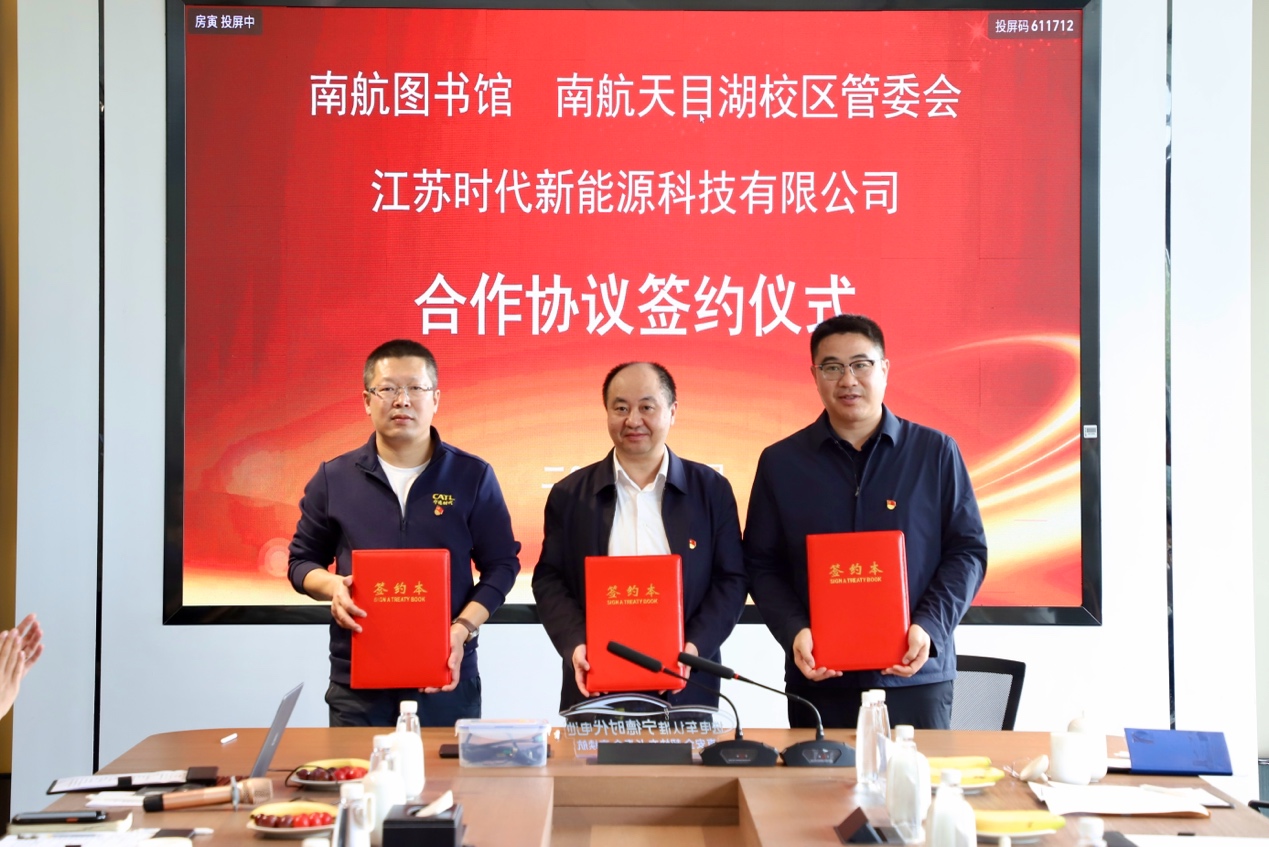 主题研学研讨结束后,图书馆馆长袁家斌、天目湖校区管委会/规建办主任缪长宗、江苏时代党委书记王文珍,分别代表三方就未来合作方向与目标提出展望,并达成合作共识,签约联建协议。