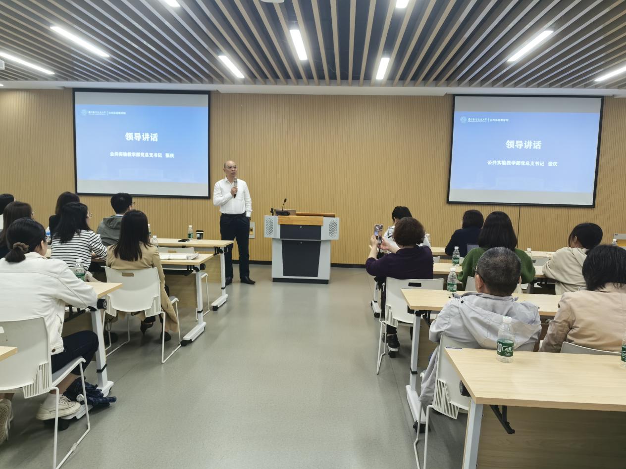 公共实验教学部党总支书记张庆强调,高校教师承担着为中国式现代化实现中华民族伟大复兴培育人才的光荣使命,是高等教育高质量发展的第一资源,是科技自立自强的重要保障,是人才队伍建设的有力支撑。他要求,全体教师对教师这份职业要始终保持心怀“敬畏之心”“敬佩之态”“敬重之情”“敬仰之境”达成“敬爱之果”。