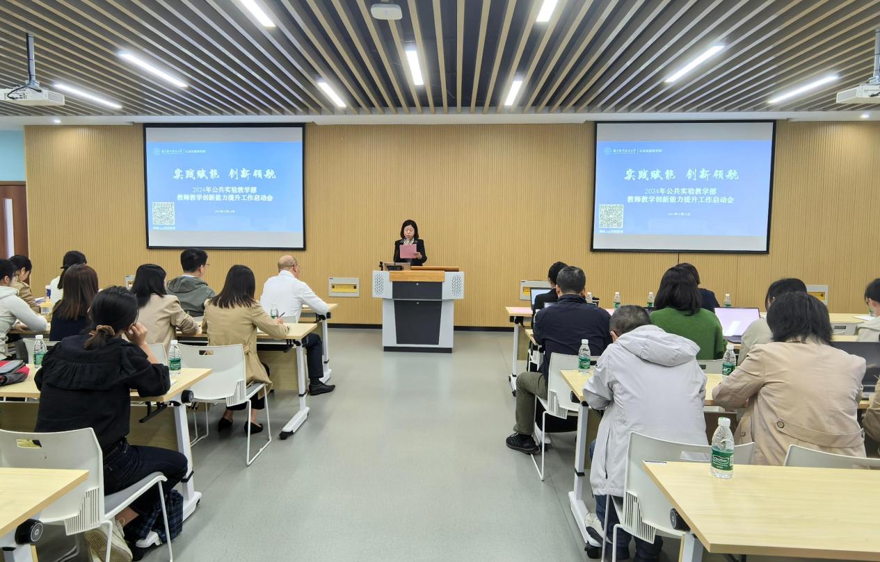 10月19日,公共实验教学部召开“实践赋能 创新领航”2024年教师教学创新能力提升工作启动会,教师发展与教学评估中心教发办主任易洋、公共实验教学部全体班子成员、各中心主任、党支部书记和校内教师代表参加了此次活动,会议由公共实验教学部副主任丁岚主持。