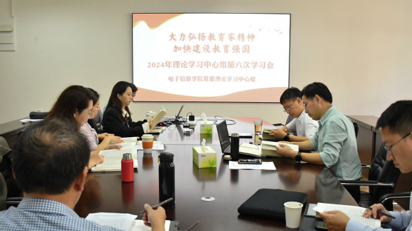 近日,电子信息工程学院党委理论中心组围绕 “大力弘扬教育家精神,加快建设教育强国” 的主题,通过现场研学与集体学习相结合的方式,专题学习了习近平总书记重要讲话和全国教育大会精神。电子信息工程学院党委理论学习中心组成员及教工支部成员参加活动,院党委书记季海群主持会议。