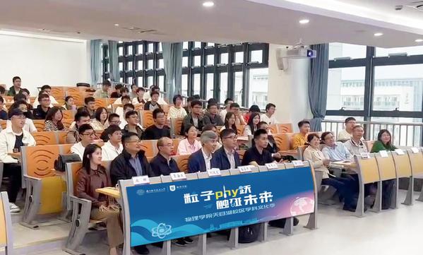 10月21日,“粒子phy跃 触碰未来”物理学院学科文化季在天目湖校区启动,国家级教学名师、浙江大学物理学院教授盛正卯,南航物理学院院长刘友文,天目湖校区党工委副书记、学生处副处长贡海俊,教务处副处长李晋斌,物理学院党委副书记欧珊,团委书记梁欢,物理学科竞赛负责老师及2024级全体学生,共计100余名师生参加了启动仪式。