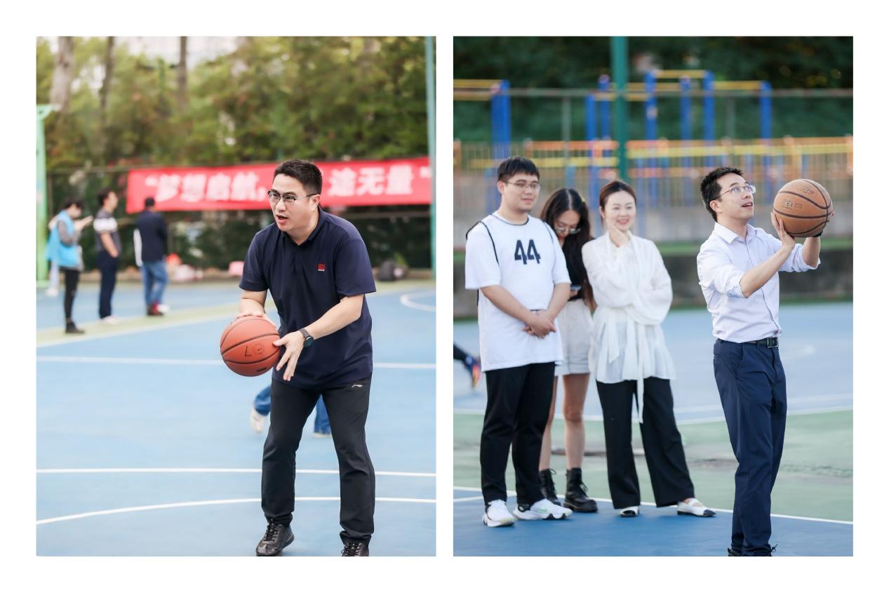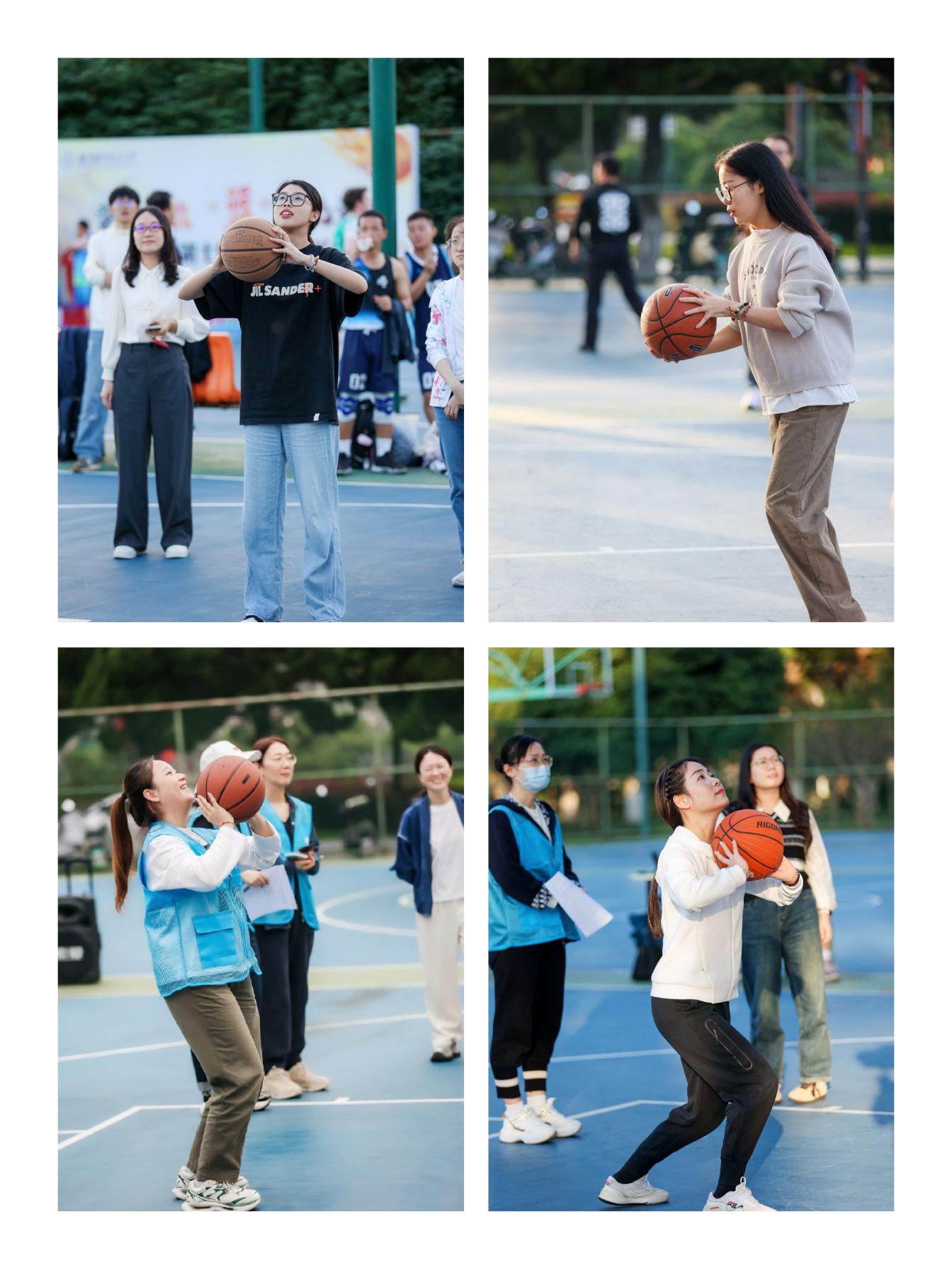 本届大赛延续传统设有定点投篮环节。在每场比赛的中场,各个参赛队伍派出教职工代表展开定点投篮挑战。竞技场上,教职工们步态从容,目光如炬,专注地瞄准篮筐蓄势待发,围观师生绷紧心弦目光紧紧跟随,每次进球都引得大家欢呼一片。