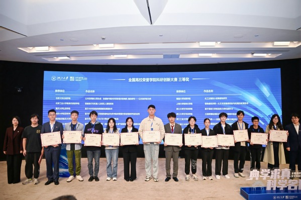 为全面提高荣誉学院学生交叉复合能力,鼓励学生积极投身于科研创新工作,促进科教融合、产教融合,浙江大学竺可桢学院面向全国高校荣誉学院举办科研创新大赛。本次大赛自2024年7月启动,分为初赛和决赛两个阶段,得到了全国高校高校荣誉学院的积极响应,共有83支队伍报名参加。专家评委从创新性、可行性、科研意义等方面对初赛作品进行了综合评审,6支队伍入围决赛。决赛中,评出特等奖2项、一等奖4项。