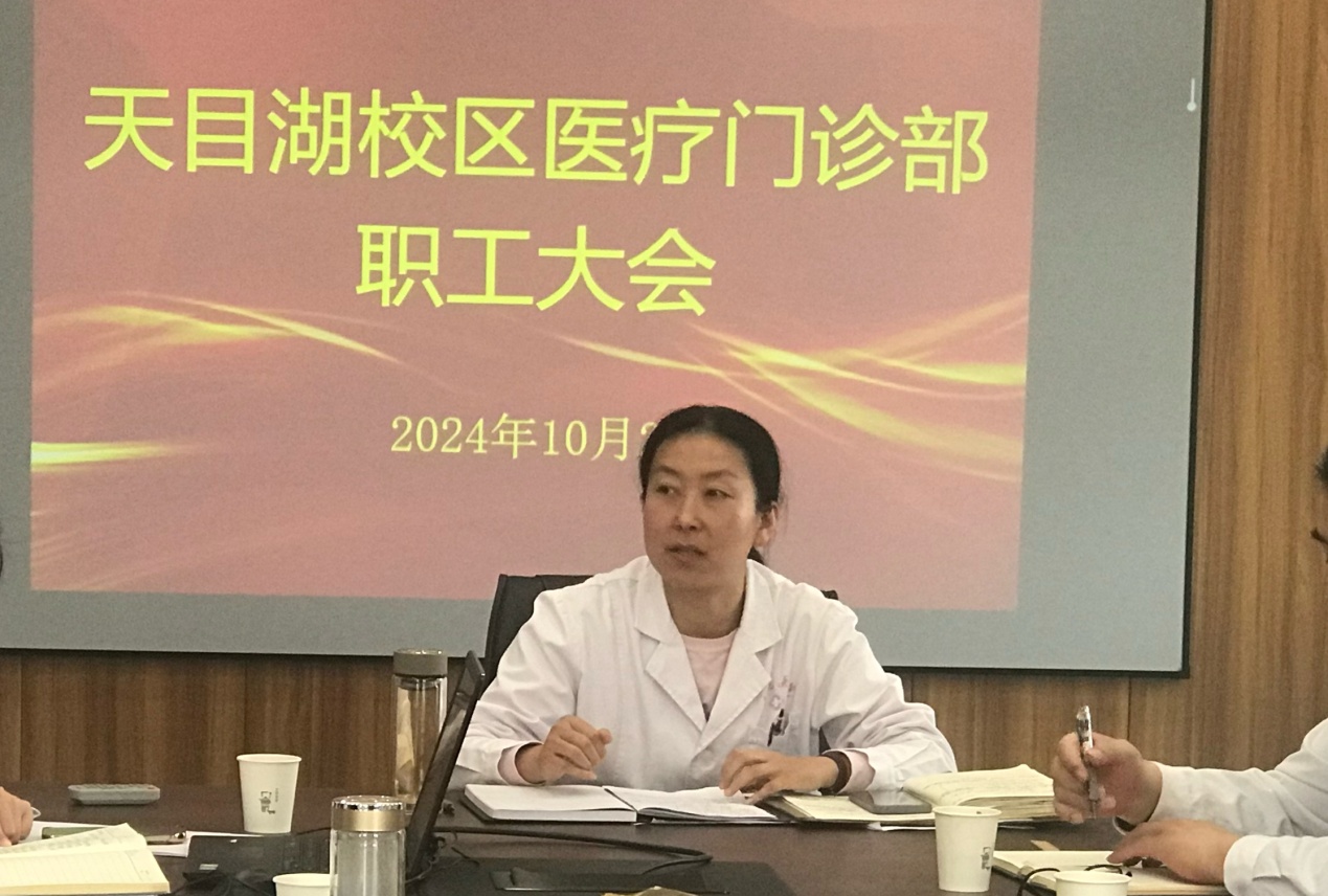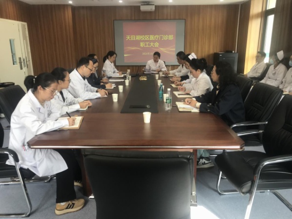 为进一步加强天目湖校区医疗门诊部综合管理水平,提高服务师生质量,根据校医院工作安排,10月23日,医院党政领导班子赴天目湖校区医疗门诊部督查指导工作,除值班人员外,门诊部全体职工参加会议。