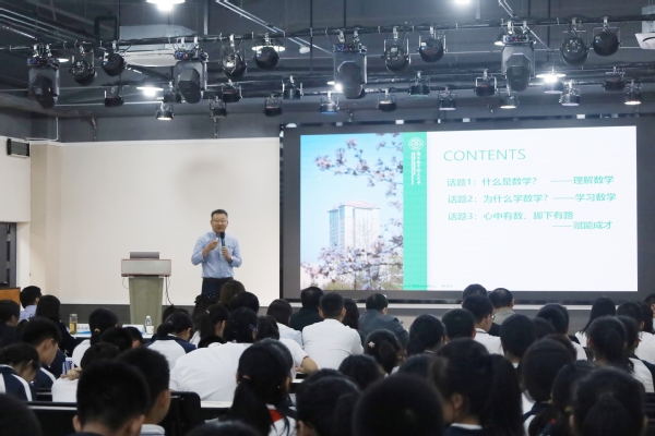 10月,数学学院受邀参加南京郑和外国语学校举办的“数学拔尖创新人才培养论坛”,学院党委书记许静,党委副书记王亚鹏,副院长蒋建林、龚跃政,党委委员王正盛,院长助理吴健,系主任龚荣芳到场参加,与郑和外校领导师生共聚一堂,共同探讨数学拔尖创新人才的培养模式和方法。王正盛以“心中有数,脚下有路”为题,通过生动的案例和深入浅出的讲解,从具体问题到抽象问题,再到数学理论研究和实际应用,为郑和外校的师生们带来了一场精彩纷呈的科普讲座。