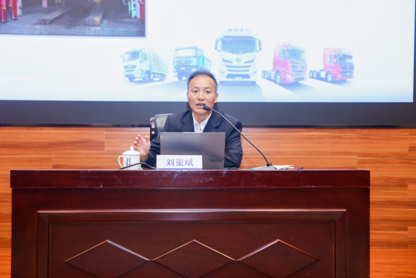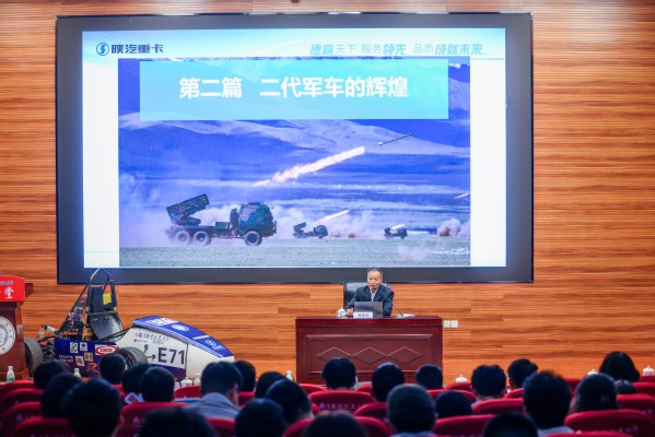 发布仪式后,刘玺斌以《热血铸重器,创优报国路》为题作专题报告。他以三代军车的发展史为主线,讲述了陕汽从三线建厂以来的创优报国之路,展现了陕汽人投身强国梦、强军梦的使命担当。他勉励在场同学,要坚定理想信念,坚守科技报国的信心和决心,在学习和实践中练就过硬本领。