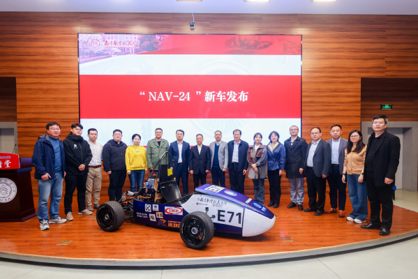 出席会议的嘉宾和学生代表为新车揭幕,共同见证“NAV-24”新车亮相。能源与动力学院党委副书记樊小杰、副院长张悦为车队授旗。车队队长、车辆工程专业2022级本科生李浩雄从参赛情况、车队发展现状、未来规划等方面介绍了车队基本情况。
