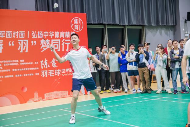 报告结束后,陈金与同学们一同来到西区体育中心羽毛球馆,开展现场教学,活动在现场热烈的欢呼声中落下帷幕。