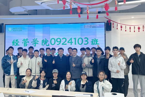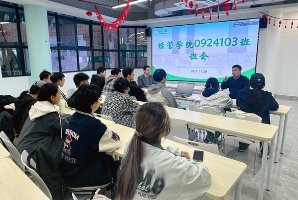 2024年11月20日,经济与管理学院0924103班开展“师生共话成长”主题班会,天目湖校区管委会副主任潘顺荣,班主任虞先玉,辅导员胡心雨及班级全体同学共同参与此次活动。