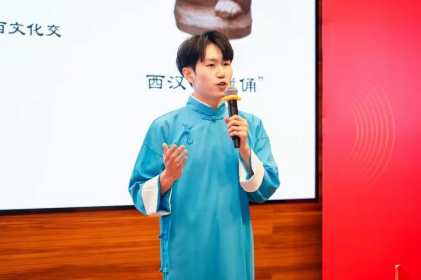 全国“青马工程”两企三新班学员,天津市静海区唐官屯镇大郝庄村党支部副书记王艺达做“匠心与创新:传承路上的青年使命”宣讲。