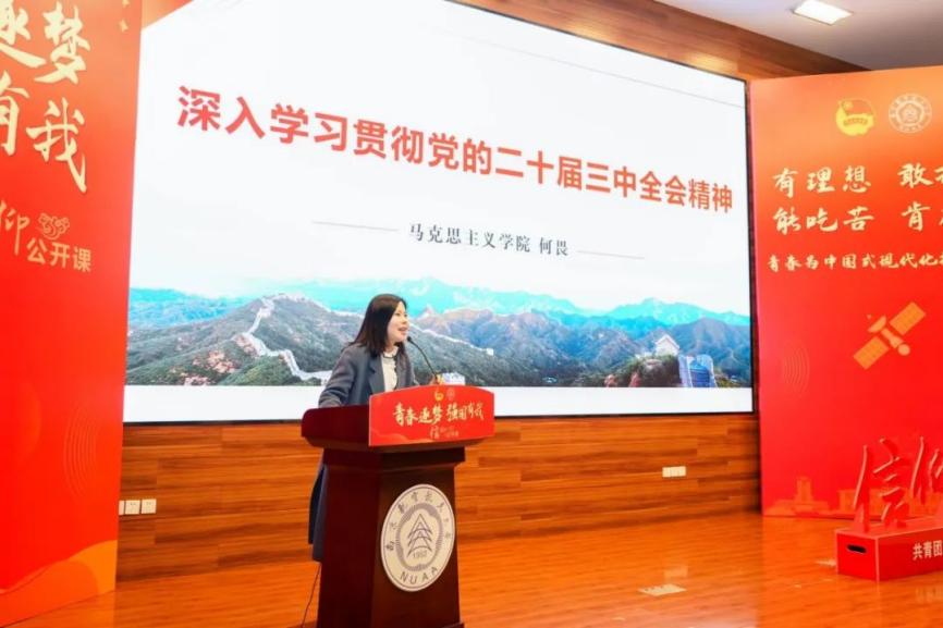 为进一步学习宣传党的二十届三中全会精神,认真贯彻落实习近平总书记关于青年工作的重要思想,促进全国、江苏和南航三级青马工程学员的互学交流,11月22日,我校组织开展全国、江苏青马工程学员联学宣讲暨“青春逐梦、强国有我”信仰公开课。