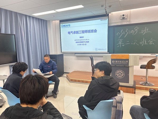 为落实本科教育教学改革精神,推进“新工科”人才培养,自动化学院积极落实“卓越工程师教育培养计划”(简称“卓越计划”),于2024年秋学期完成了首届电气工程及其自动化专业“卓越班”的组班选拔,并将学院一直注重的班级建设工作融入到“卓越班”建设中去。11月23日,自动化学院在天目湖校区T1304开展了0323208班“卓越启航”主题班会活动。班会由班主任秦海鸿主持。
