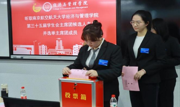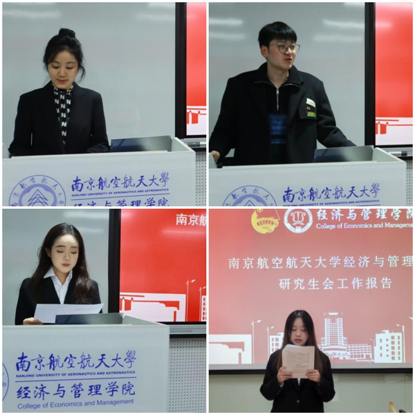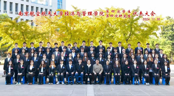 11月30日,南京航空航天大学经济与管理学院第四次学生代表大会、第四次研究生代表大会在将军路校区学院A0308报告厅成功召开。学院党委副书记胡苹、代团委书记朱一豪、校研究生会主席李时铭、校学生会主席团成员张瀚茹、47位本科生代表和28位研究生代表共同出席了大会开幕式。