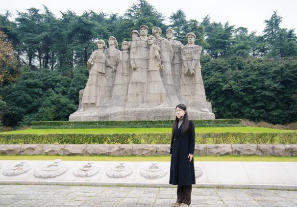 师生一行步入雨花台烈士陵园北殉难处瞻仰烈士就义群雕,在雨花英烈事迹与精神宣讲团成员南京航空航天大学人文与社会科学学院本科生陈艺卓的讲解中,重温共产党人的崇高理想信念、高尚道德情操、为民牺牲的大无畏精神。