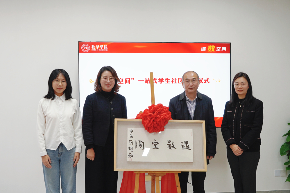 为有效落实立德树人根本任务,扎实推进“三全育人”,打通学生管理服务“最后一公里”,12月13日,数学学院“遇数空间”一站式学生社区揭牌仪式在天目湖校区成功举办,江苏省书法协会副主席兼秘书长刘灿铭,数学学院党委书记许静,党委副书记王亚鹏,院长助理、概率统计系主任蒋辉,计算科学系主任龚荣芳,数学系曹峰,辅导员迪丽努尔·贝坎、赵美婷、胡爱迪,2024级本、预科学生代表共同参加。揭牌仪式由迪丽努尔·贝坎主持。