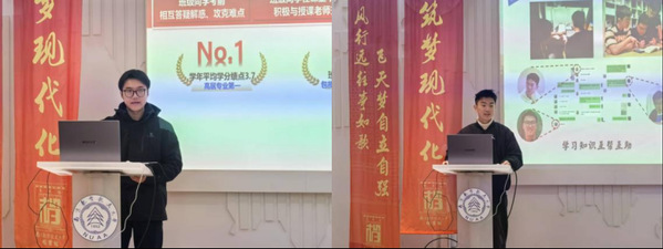 标兵班级代表、0221107副班长董叻,以及标兵宿舍代表、B7-632寝室长徐湛分别上台发言,分享了班级和宿舍在学风建设、科研创新、志愿服务等方面的优秀事迹,展示了能源与动力学院学子们积极向上的精神风貌和团结协作的集体力量。
