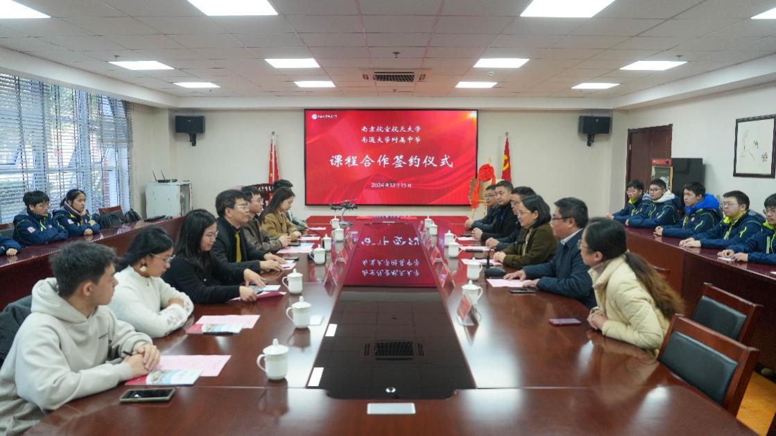 在南航与通大附中的课程合作签约仪式上,范永梅和樊小杰分别介绍了双方学校的发展历程、办学特色、人才培养情况。范永梅对南航领导专家表示热烈欢迎,对南航给予的大力支持表示感谢。樊小杰表达了学校对于“双高”对接拔尖创新人才培养的高度重视,希望双方以此次交流为契机,推进大学高中一体化合作,共同探索拔尖人才培养新模式,拓宽双高协同育人渠道,实现师资队伍共建、科研资源共享、人才培养共进,为服务国家重大战略培养更多精英人才。