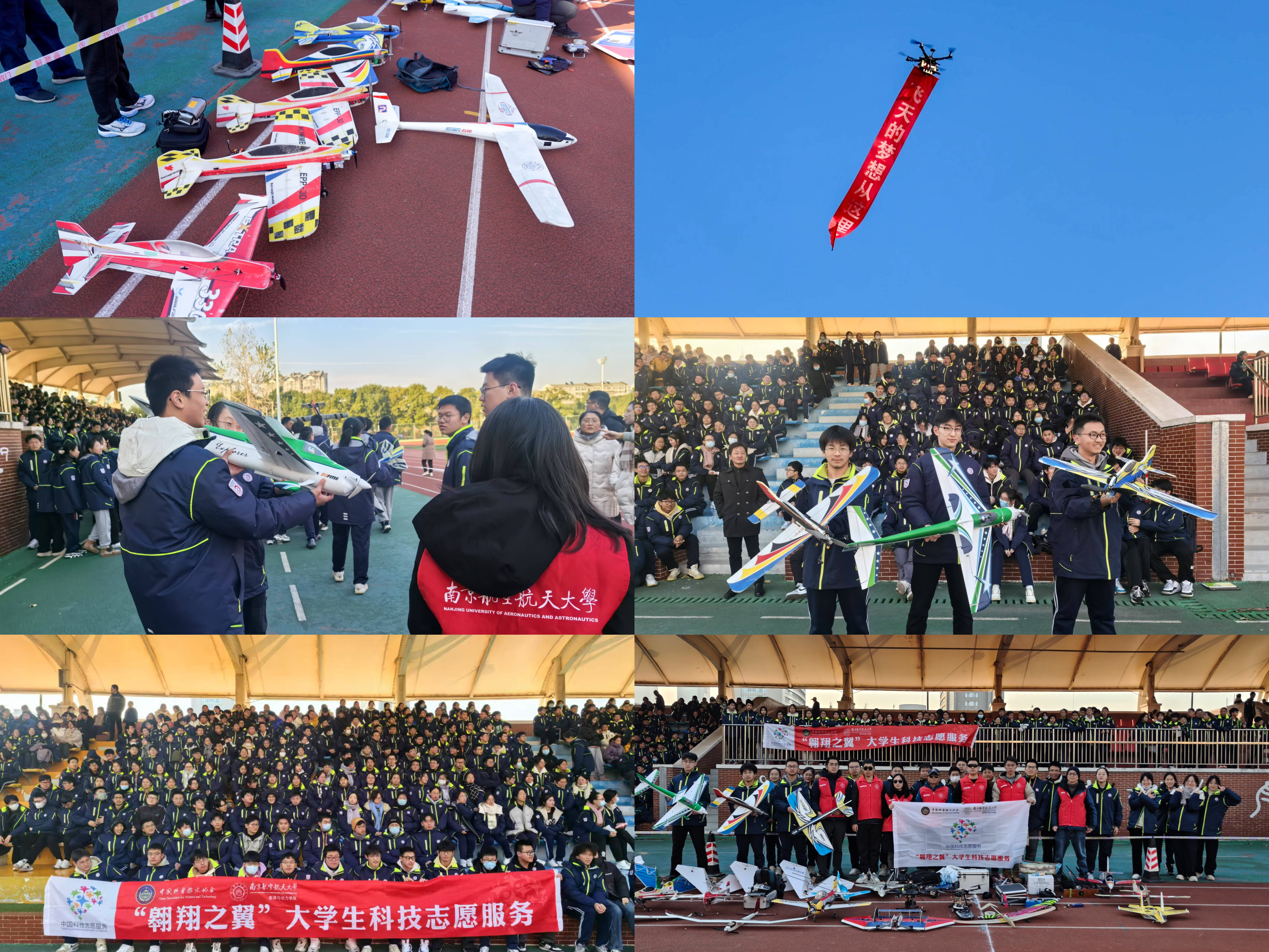 学院“翱翔之翼”大学生科技志愿服务团队航模队员还为通大附中学子上演了一场精彩纷呈的沉浸式航模表演和科普课程。团队队员向同学们详细地介绍各款飞机的名称、设计特点以及飞行操控原理,让师生们感受到特技飞行的无限魅力。