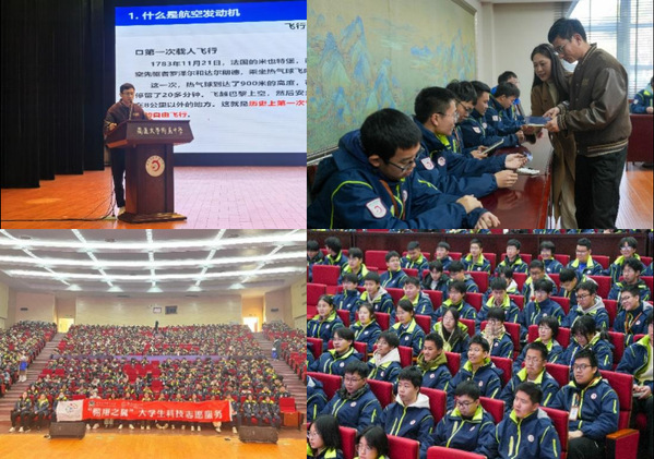 签约仪式后,能源与动力学院王德鹏教授为通大附中学子带来一场精彩绝伦的讲座——《现代工业皇冠上的明珠:航空发动机》,深入浅出地讲解了航空发动机的研发原理、发展历程、当代前沿技术以及南航能动学院在国防领域作出的突出贡献。此次航空科普大课和思政一体化讲座,有效激发了中学生对航空航天的兴趣,极大鼓舞了其投身国防的理想信念。同学们认真聆听报告并积极回应,现场航空航天知识科普互动热情高涨,学院师生为同学们赠送南航文创产品,气氛推向高潮。