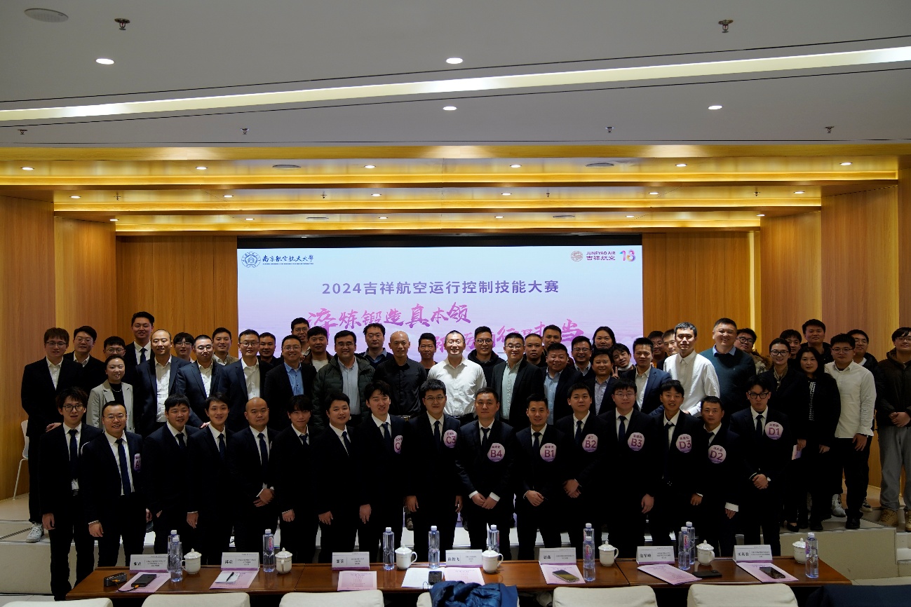 12月20日,吉祥航空运行控制技能大赛在南京航空航天大学民航学院成功举行。本次大赛由上海吉祥航空股份有限公司主办,上海吉祥航空股份有限公司江苏分公司和南京航空航天大学民航学院联合承办,来自上海吉祥航空股份有限公司运控部的4支队伍、16名选手参与角逐。民航上海监管局航务处处长陈俊飞,南京航空航天大学民航学院副院长邵荃、空中交通系主任张军峰,吉祥航空运行总监赵鑫、人力资源部总经理陈晨,吉祥航空运控部/AOC领导同事、民航学院学生、华东地区航空公司运控部门代表参加活动。