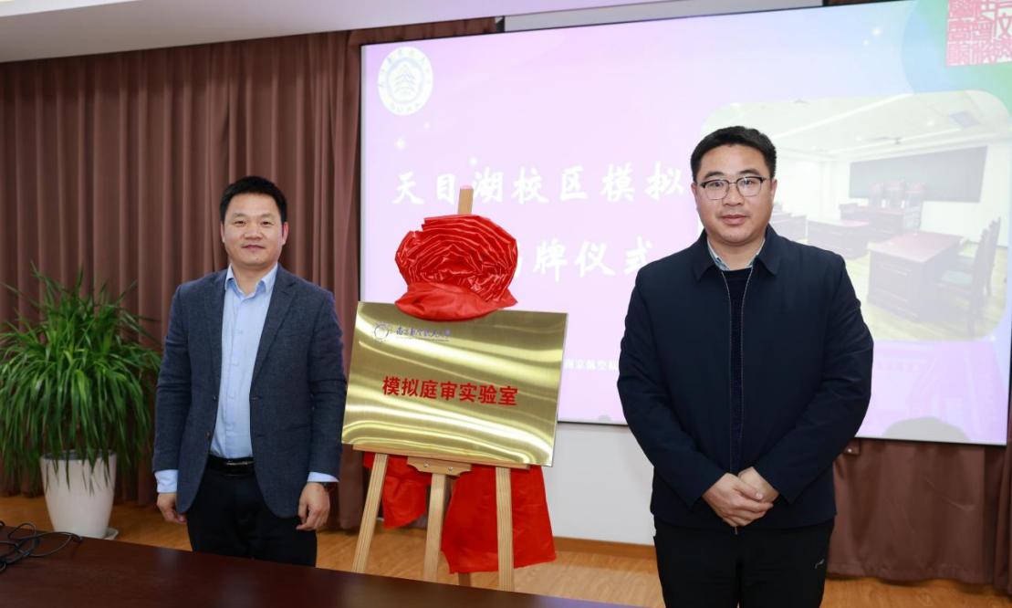 今年,学院学生第一次入驻天目湖校区,为了给学生提供真实的模拟庭审环境、锻炼学生专业实践能力、培养法律核心素养,人文学院与天目湖校区共建模拟庭审实验室。缪长宗、高志宏共同为模拟庭审实验室揭牌。