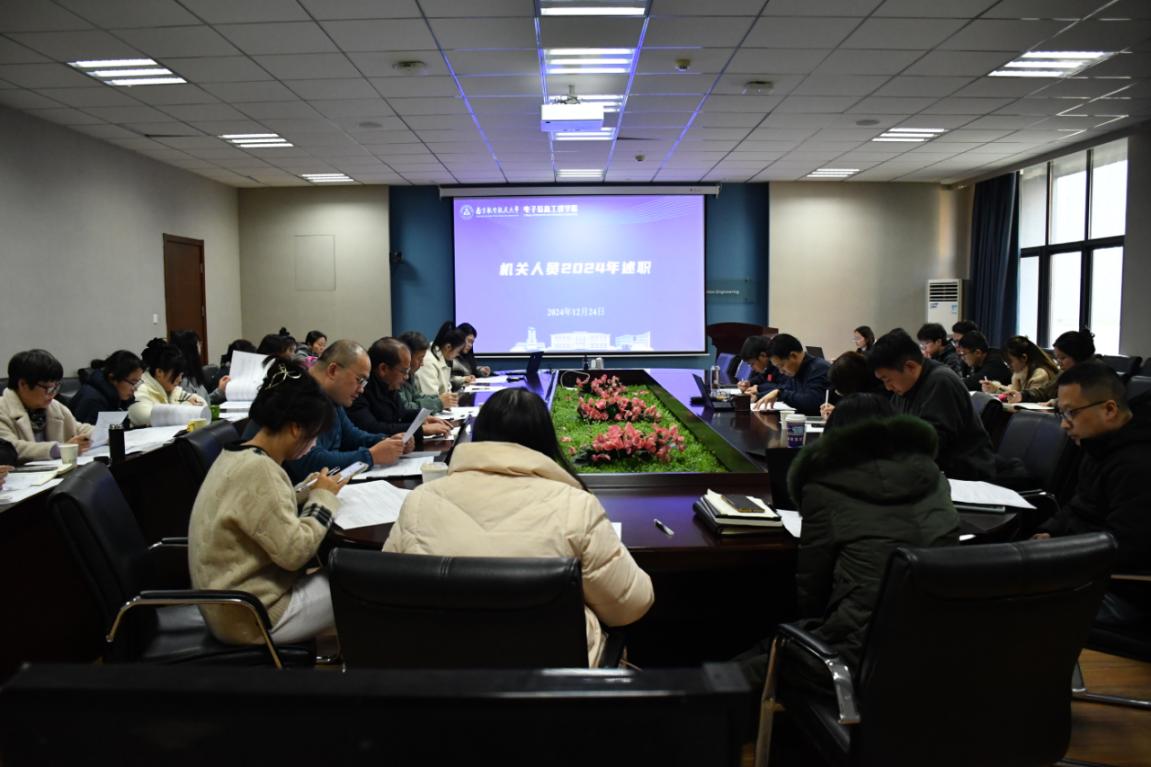为进一步加强学院机关部门队伍建设,12月24日下午,电子信息工程学院2024年度机关人员述职评议会在学院209会议室召开。学院领导班子、院长助理、各系主要负责人、机关全体人员和辅导员参加会议。会议由学院党委书记季海群主持。
