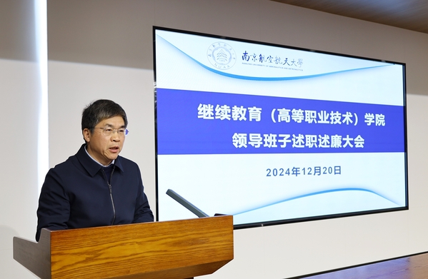 院长王伟代表学院领导班子作了《学院2024年工作总结报告》并作个人述职述廉报告。报告对学院2024年高等学历继续教育、自学考试项目、中外合作SQA项目及非学历教育培训等多方面取得的显著成绩进行了全面总结。他强调,在全院师生的共同努力下,学院不仅实现了教学质量的稳步提升,还在服务社会能力上取得了突破性进展,非学历教育培训业务大幅增长,为学校“双一流”建设和服务社会职能提供了有力支撑。2025年是“十四五”规划的收官之年,学院全体师生要以更加坚定的决心、更加严谨的态度、更加有力的行动、持之以恒的抓好各项工作,努力推动学院继续教育事业高质量发展。
