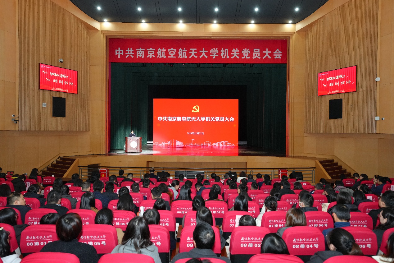12月27日下午,中共南京航空航天大学机关第五次党员大会在明故宫校区大学生活动中心召开。全体在校校领导、党委常委、校长助理和来自机关28个党支部党员参加会议,机关无党派人士代表列席会议。大会由机关党委副书记褚峥主持。