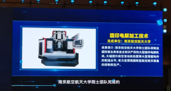 我校旋印电解加工技术获2024年度“南京市十大科技成果”,并在会上通过视频发布。朱荻院士团队在国际上首创了旋印电解加工方法,建立了旋印电解加工技术体系,研制出国际首台具有自主知识产权的大型旋印电解加工机床,大幅提升航空发动机机匣等大型薄壁构件的制造水平,有力支撑我国新型航空航天装备的研制和生产。