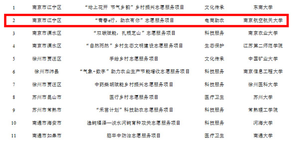 近日,江苏大学生志愿服务乡村振兴计划省项目管理办公室正式公布了首批江苏大学生志愿服务乡村振兴计划“小组团”青年志愿服务示范项目名单,我院组织的“青春e行,助农有你”志愿服务项目成功入选。