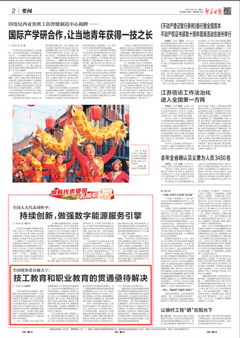 编者按:3月2日,《新华日报》刊发全国政协委员、副校长施大宁采访文章《全国政协委员施大宁:技工教育和职业教育的贯通亟待解决》。现转发全文如下: