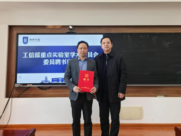 会议伊始,陈修文为王学良颁发了“空天信息材料与物理”工信部重点实验室学术委员会委员聘书。王主任的加入,不仅能为实验室的发展方向提供更具战略性的指导,还有助于实验室的科研成果更紧密地对接实际应用,推动产学研深度融合,更为物理学院与航天十院的合作奠定了坚实的学术基础。