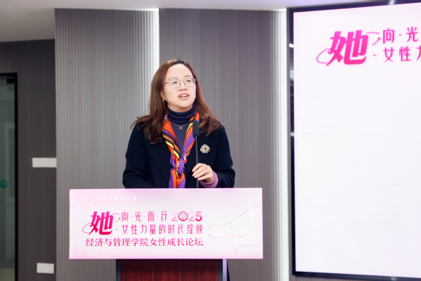 活动伊始,胡苹代表学院致开幕辞。她首先对几位嘉宾和在场师生的到来表示热烈的欢迎和由衷的感谢,她表示,女性是社会发展的重要力量,经管学院女性师生占比超过一半,学院始终关注女性师生的成长需求。她希望能以本次论坛的开展为契机,搭建广大女性师生的交流平台,激励更多女性勇敢追梦、突破自我。