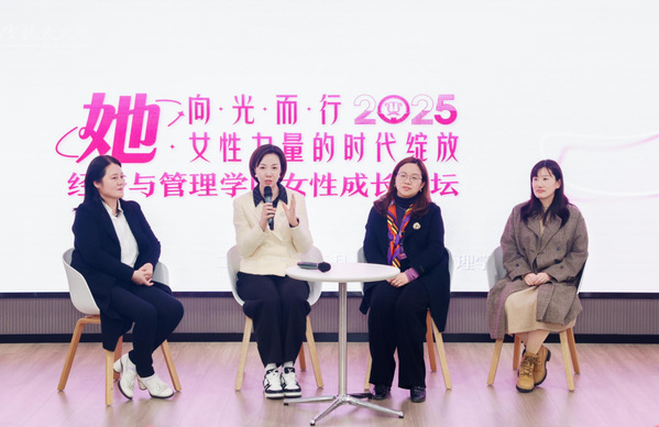 为了庆祝第115个三八国际妇女节,助力新时代女性健康成长,3月7日,经济与管理学院在A0405报告厅举办“她·向光而行”女性成长论坛。学院党委副书记胡苹、南京摩尔猫猫电子商务有限公司总经理李漪阳、经济与管理学院教授马静、南京师范大学心理学院副教授纪婷婷等嘉宾及近百名师生代表齐聚一堂,共话女性成长与时代担当。